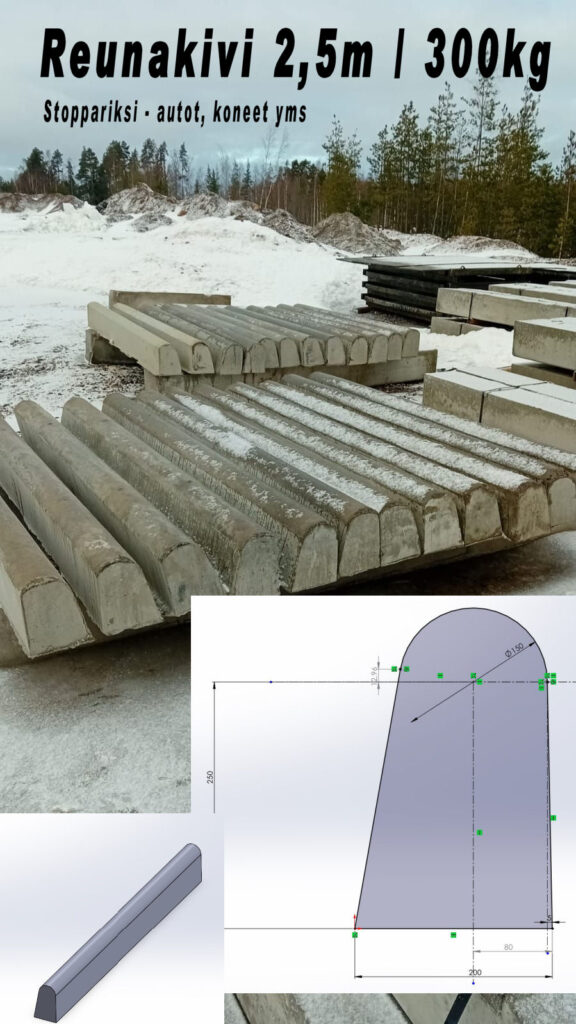 Esimerkiksi sokkeliksi, muuriksi yms. Säänkestävä betoni, raudoitettu.
